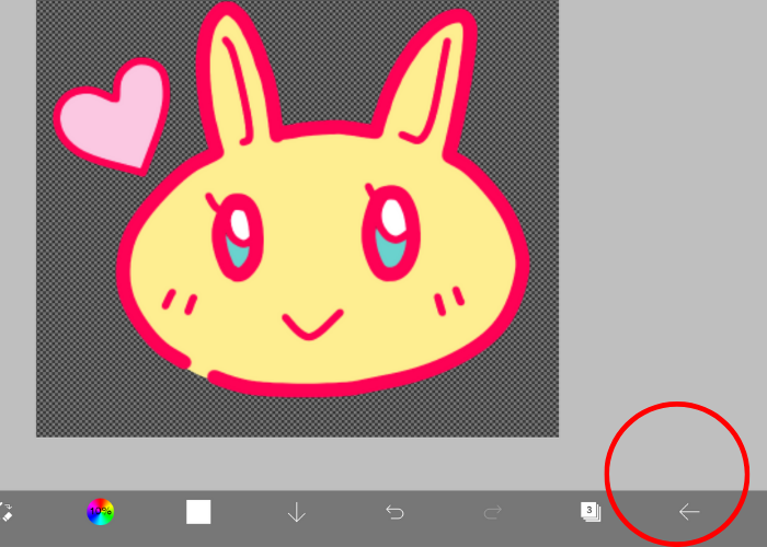 続いて、レイヤーそのものを消したい場合は、右の「ゴミ箱」をタッチするとレイヤーの削除が可能です。万が一間違えて消してしまった場合は、下の戻るボタンからキャンセルを行う事も可能です。下の左Uターンの矢印が「戻る」で、その右側が「進む」ボタンです。
